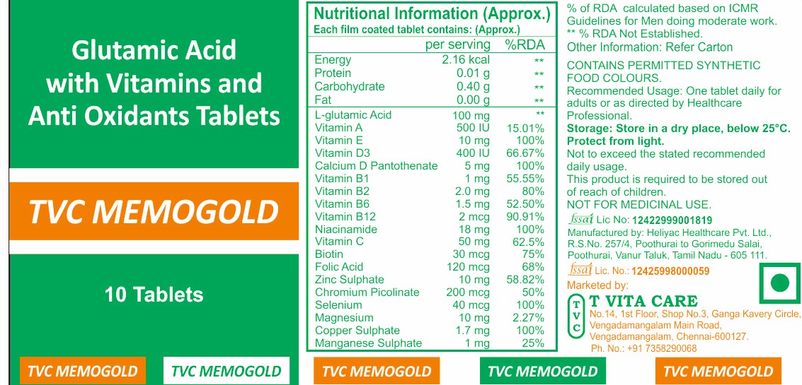 L-Glutamic acid, VITAMIN A, VITAMIN E, VITAMIN D3, CALCIUM DPANTOTHENATE, VITAMIN B1, VITAMIN B2, VITAMIN B6, VITAMIN B12, NIACINAMIDE, VITAMIN C, BIOTIN, FOLIC ACID, ZINC SULPHATE, CHLROMIUM PICOLINATE, SELENIUM, MAGNESIUM, COPPER SULPHATE, MANGANESE SULPHATE