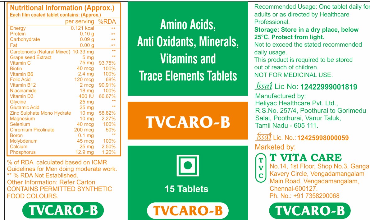 Carotenoids (Natural Fixed), Grape seed Extract, Vitamin C, Biotin, Vitamin B6, Folic Acid, Cyanacobalamin, Niacinamide, Vitamin D3, Glycine, Glumatic Acid, Zinc Sulphate Mono Hydrate, Magnesium, Selenium, Chromium Picolinate, Boron, Molybdenum, Calcium Phospate